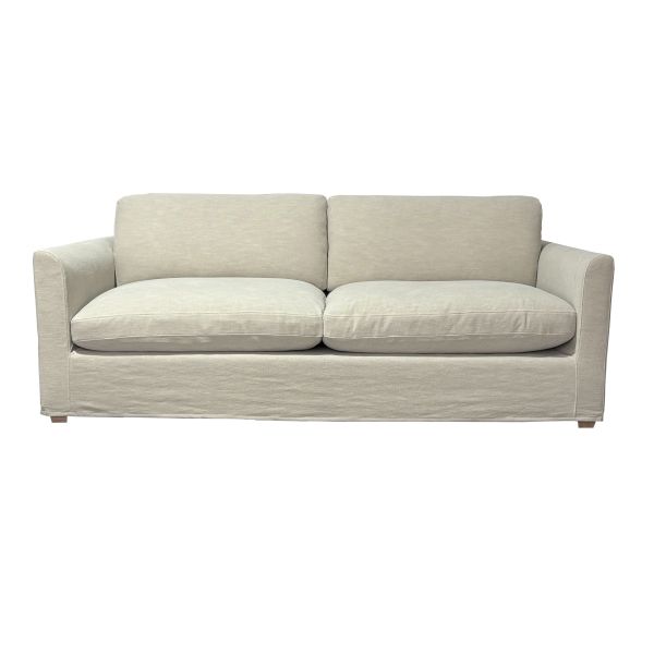 This two- or three-seater sofa features breathable linen-cotton fabric upholstery and subtly exposed solid wood legs, combining natural elegance with modern design. The lightly visible wooden legs give the sofa a floating appearance while maintaining stability and durability. Soft, comfortable cushions provide a cozy seating experience, and the clean lines make it easy to integrate into various interior styles. Ideal for living rooms, lounges, or compact spaces seeking a blend of comfort, practicality, and subtle sophistication.